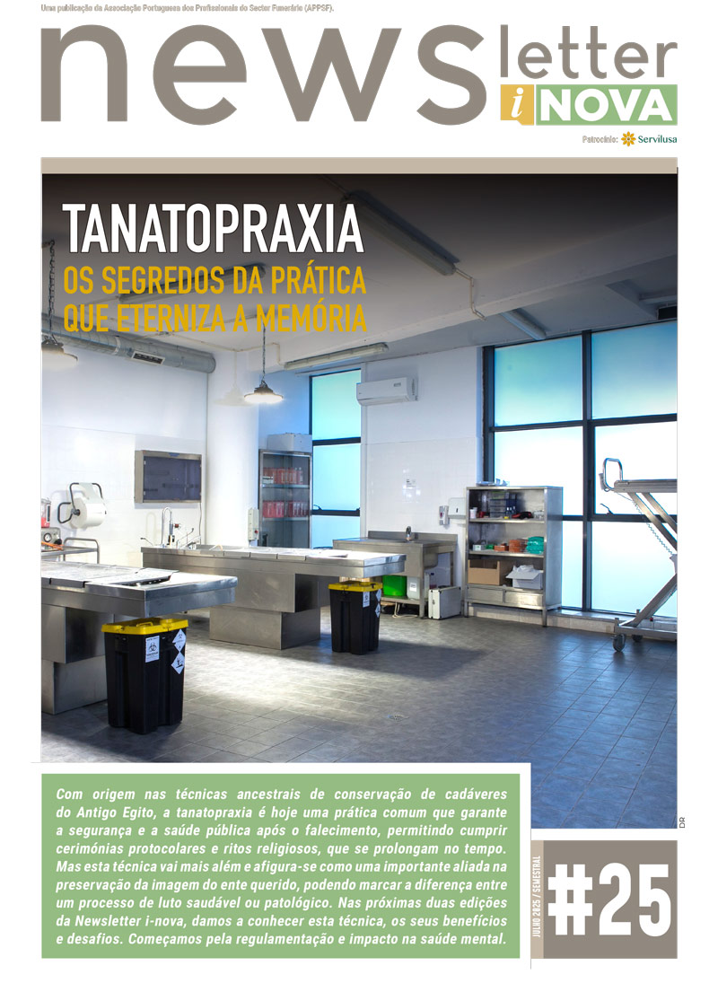 Tal como a Associação Portuguesa dos Profissionais do Sector Funerário (APPSF) foi desafiada a evoluir e a partilhar o seu conhecimento e experiência com a comunidade e não apenas com os profissionais; também a partilha dessa atividade deixou de caber “apenas” nas ações de formação, eventos e reuniões. Assim, em 2013, a APPSF criou a Newsletter i-nova, com o objetivo de dar a conhecer a sua atividade nas várias áreas (formação e participação na regulamentação do setor a nível nacional e internacional) a profissionais e à comunidade em geral, transformando-se este veículo de comunicação também numa fonte de formação e de promoção do despertar de consciências para os desafios do setor, tornando-o mais preparado para responder às necessidades das famílias e da sociedade. Com a chegada deste novo site, faz-nos sentido disponibilizar os seus números também em formato digital, alargando assim, mais uma vez, o leque de destinatários da nossa atividade. A Newsletter i-nova testemunha também a evolução do setor e da APPSF nos últimos anos.